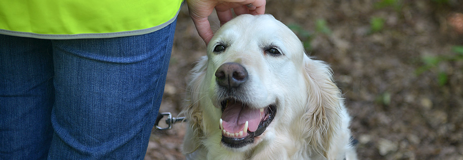 Caroline mit dem Weißen Schweizer Schäferhund Barkley: Sobald Barkley seine "Mantrailing-Uniform" anhat, ist er voll aufgedreht. Er weiß, dass er sich mit all seinen Sinnen austoben kann - eine Begeisterung, die wir gemeinsam teilen...